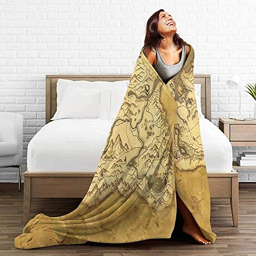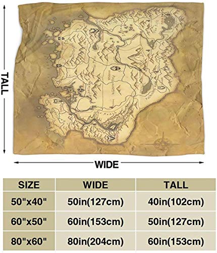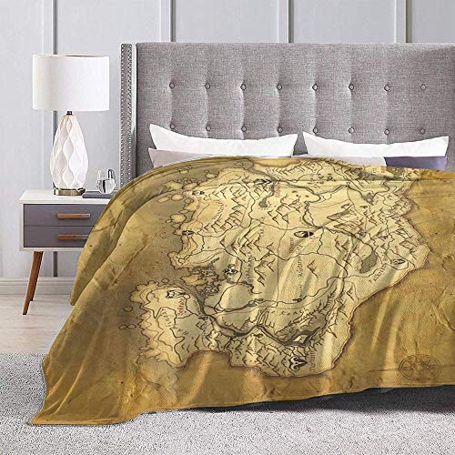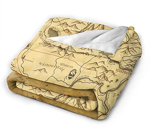 DWgatan Manta,Mapa de pergamino Desgastado de Skyrim Que arroja una Manta cálida Suave y Elegante para Padres Adultos y niños en el sofá Cama adecuado-50 x40