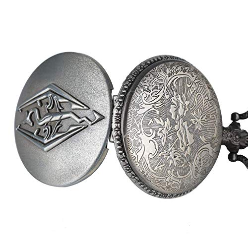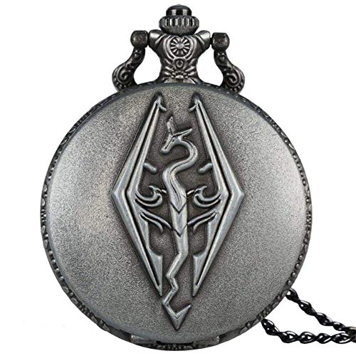 JJYY Reloj de Bolsillo The Elder Scrolls V Theme Retro Bronze 3D Dragon Design Reloj de Bolsillo de Cuarzo con Cadena de Collar para niños Skyrim Colgante Regalos