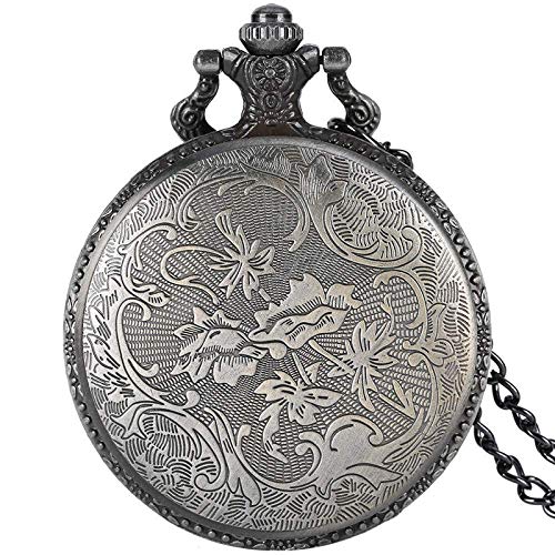 HOOBBI Reloj de Bolsillo The Elder Scrolls V Theme Retro Bronze 3D Dragon Design Reloj de Bolsillo de Cuarzo con Cadena de Collar para niños Skyrim Colgante Regalos