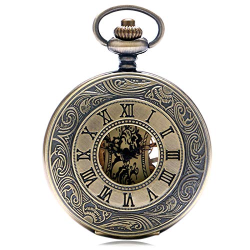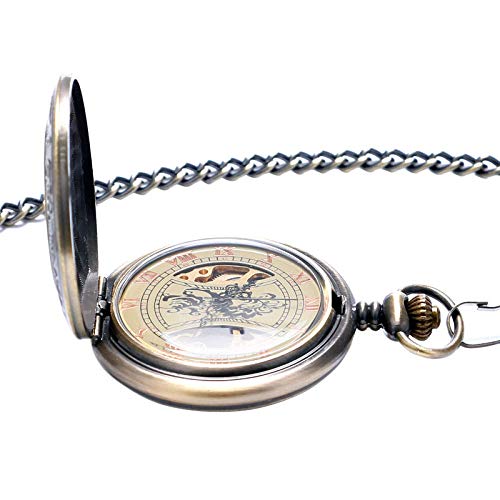 OIFMKC Reloj de Bolsillo Reloj de Bolsillo para Hombre Retro Bronce Steampunk Reloj de Bolsillo mecánico Único Hueco Número Romano Esqueleto Skyrim