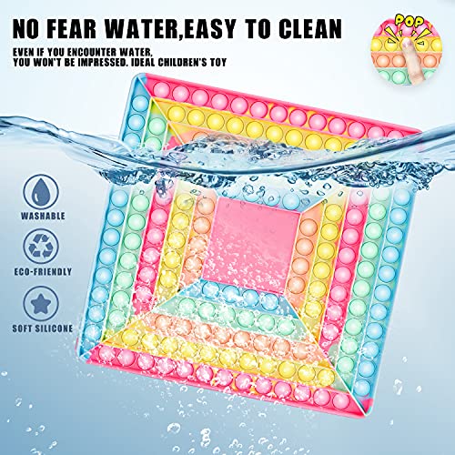 - Materiales de alta calidad: el tamaño del pop es de 12 * 12 pulgadas, que está hecho de material de silicona de caucho no tóxico, seguro e inofensivo, adecuado para adultos y niños.