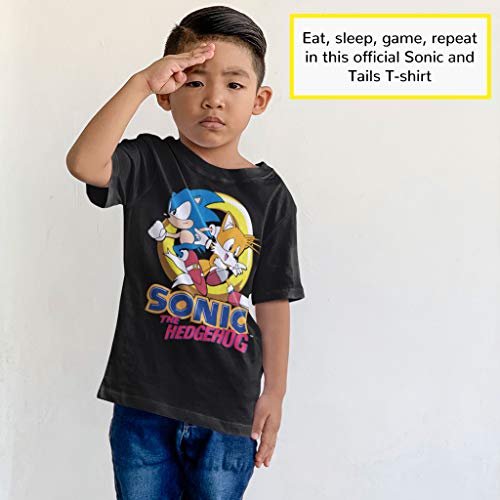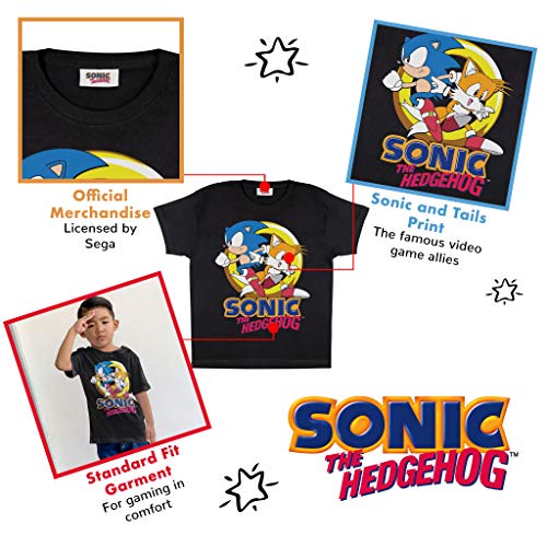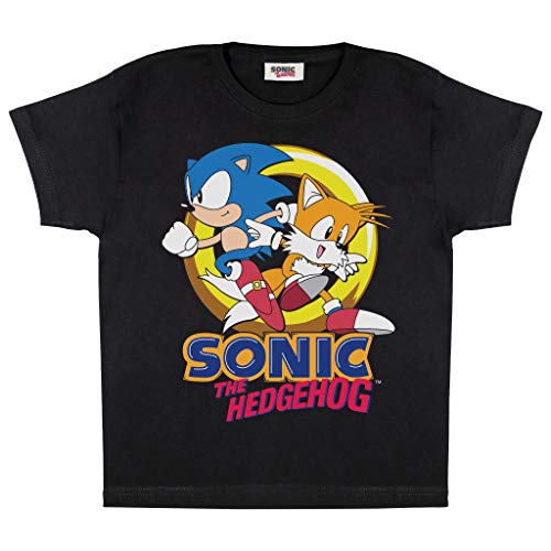 Popgear Sonic The Hedghog y Colas Camiseta de los Muchachos Negro 158 | Videojuegos clásicos, Idea Regalo para los niños, Gamer Top