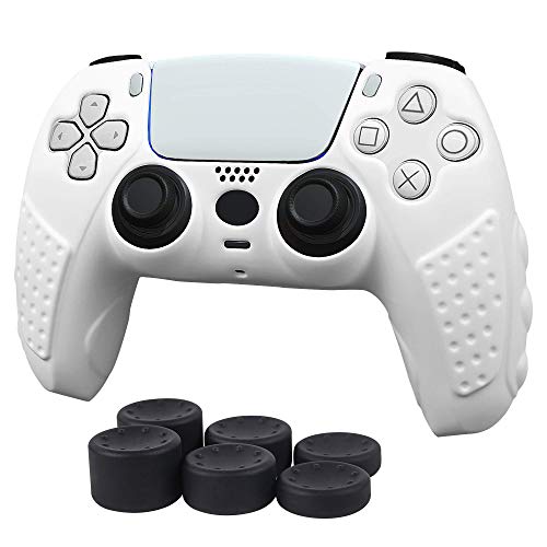 CHIN FAI para Sony PS5 Dualsense Controller Skin Case, Funda Protectora de Silicona Antideslizante para Sony Playstation 5 PS5 Controller Gamepad Accesorios de Juego con 6 agarres para el Pulgar