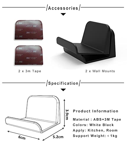 - Lo que obtienes: 4 soportes de pared para controladores, 6 juegos de tornillos que incluyen anclajes de pared, 8 cintas de doble cara, plástico de polímero termoplástico duro duradero (ABS) para una vida útil muy larga.