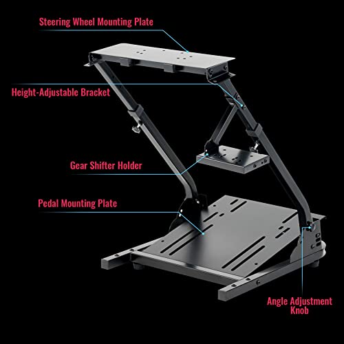- ALTURA Y ÁNGULO AJUSTABLES - El soporte de la volante es ajustable en ángulo y en altura de 56 a 78cm, y la placa de la rueda es ajustable en ángulo, todo para su conveniencia