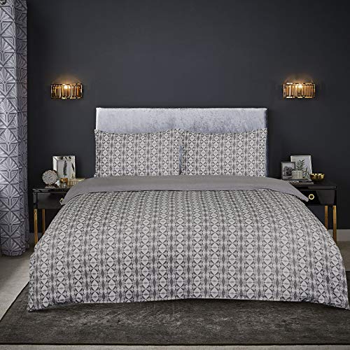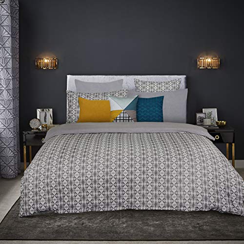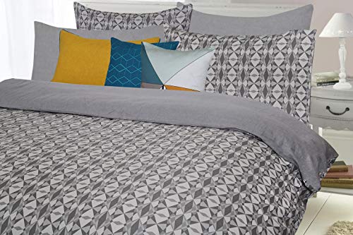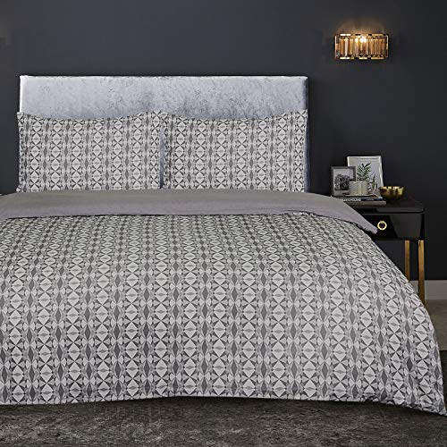 - Suave y acogedor juego de funda de edredón Spiro en varios tonos de gris, parte delantera de diamante con reverso gris teñido liso.