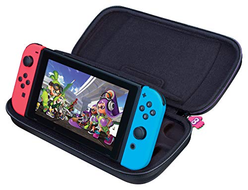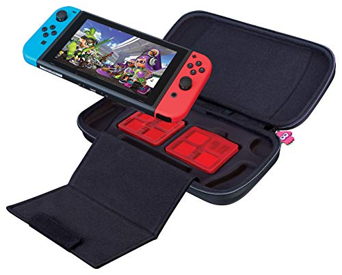 - Incluye: Estuche de Transporte para consola y fundas de cartuchos: Guarda y protege el sistema Nintendo Switch, separador acolchado para proteger la pantalla, correas y juegos adicionales; carcasa rígida y duradera; asa de transporte; compartimiento para la ventilación de la consola