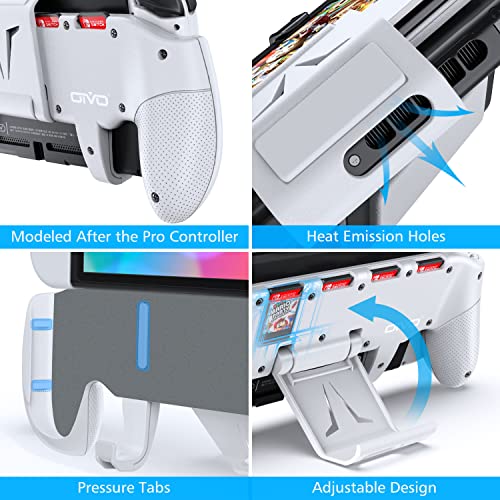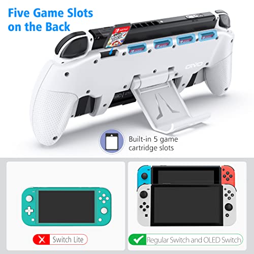 OIVO Switch OLED Grip con Soporte Ajustable Compatible con Nintendo Switch/Switch Modelo OLED, Estuche Ergonómico de Agarre Asimétrico con 5 Ranuras para Juegos y 4 Tapas para el Pulgar - Blanco
