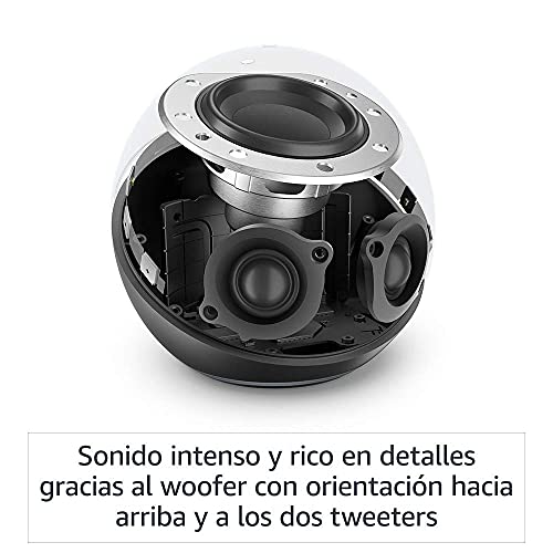 - Sonido de alta calidad: el Echo ofrece agudos claros, medios dinámicos y graves profundos, lo que genera un sonido intenso y rico en detalles que se adapta automáticamente a cualquier estancia.