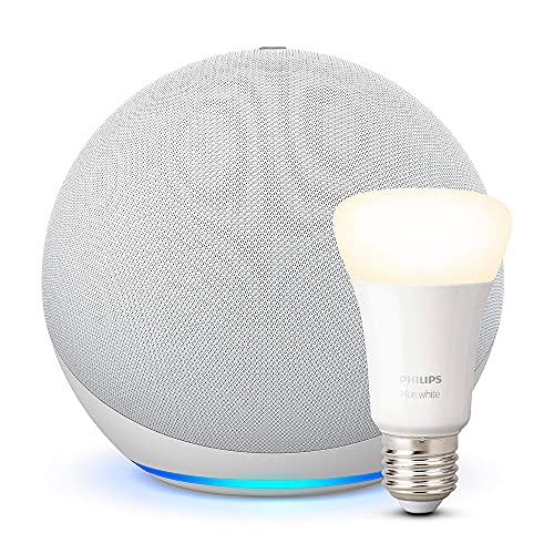 Echo (4.ª generación) | Sonido de alta calidad | Blanco + Philips Hue Bombilla Inteligente (E27), compatible con Alexa