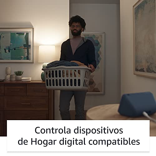 - Lista para ayudarte: pídele a Alexa que reproduzca música, responda a preguntas, narre las noticias, consulte la previsión del tiempo, configure alarmas, controle dispositivos de Hogar digital compatibles y mucho más.