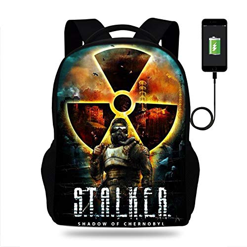 Mochilas Infantiles 17inch Stalker Shadow of Chernobyl College Mochila USB Charger Schoolbag Mochilas para Computadora Portátil para Adolescentes Mochila Escolar Niños Mochila Estilo Aleatorio