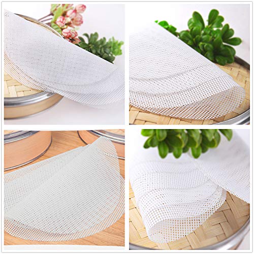 PPX 5 Dim Sum Vaporera Papeles y 1 Cepillo de Aceite de Silicona/Silicona Steamer Alfombrilla para Vaporera de bambĂș/Vaporera Inserciones Reutilizable, Antiadherente, fĂĄcil de Limpiar (20cm)