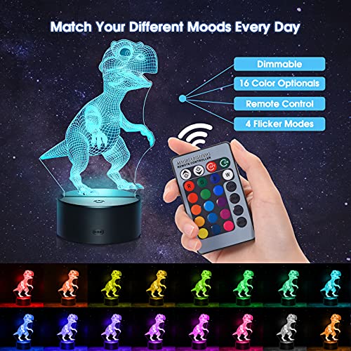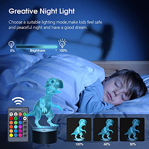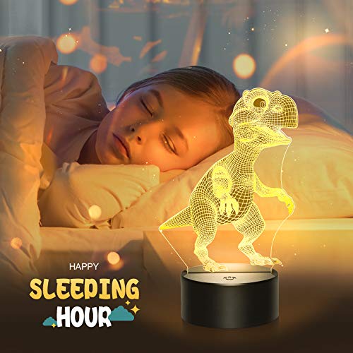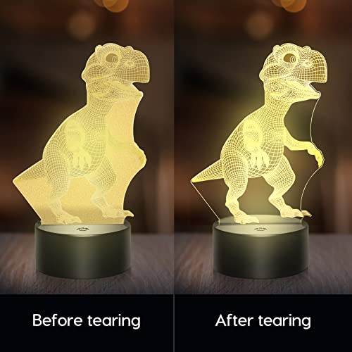 - ćCool 3D Dinosaur Night Lightć- La luz nocturna para bebĆ©s estĆ” hecha de una placa guĆa de luz acrĆlica óptica con grabado lĆ”ser. Los efectos de iluminación Ćŗnicos y los sorprendentes efectos visuales de dinosaurios 3D hacen que la habitación del bebĆ© sea mĆ”s interesante. Este es definitivamente un juguete de dinosaurio ideal y un regalo para niƱos de 2-10 aƱos.