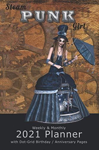 Steam Punk Girl: Weekly & Monthly 2021 Planner with Dot-Grid Birthday/ Anniversary Pages