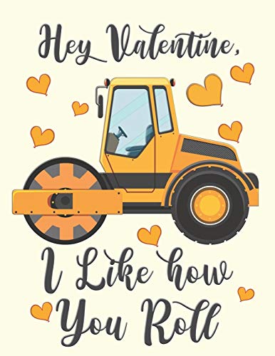 Hey Valentine, I Like How You Roll: Cute Steam Roller Digger For Kids Composition 8.5 by 11 Notebook Valentine Card Alternative