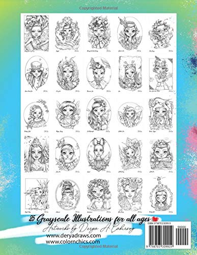 Color'n'Chics Coloring Book 2 Fantasy Fairy Portraits Grayscale: Coloring Book for All Ages, featuring Beautiful Cute Big Eyed Illustrations