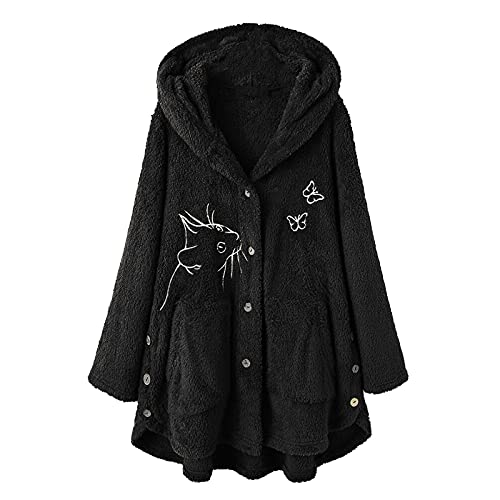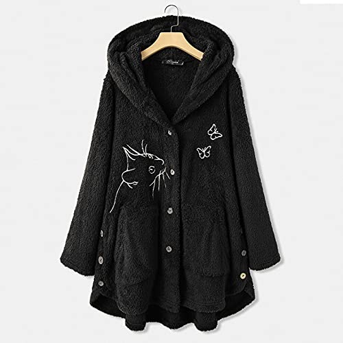 Abrigo Mujer invierno Elegantes Chaqueta con Capucha Impresión de Gato Outwear Manga Larga Vintage Señoras Remata Cálido Chándal con Bolsillos