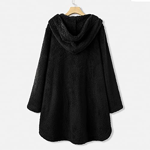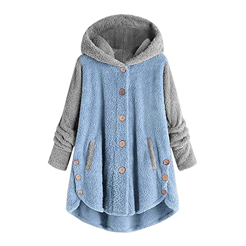 riou Abrigos Largo con Capucha para Mujer Suéter Empalme Otoño Invierno Sudadera de Manga Larga Chaqueta Caliente Felpa Outerwear con Botón