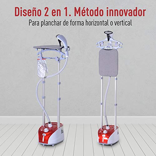HOMCOM Cepillo de Vapor para Ropa 1800W Temperatura Ajustable a 11 Niveles Centro de Planchado Vertical de Doble Barra con Depósito de 2L en 38s de Calentamiento
