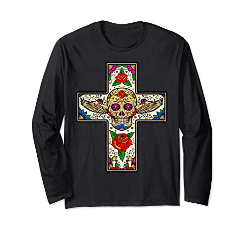 Cruz Cristiana Calavera de Azúcar Día de los Muertos Regalos Manga Larga