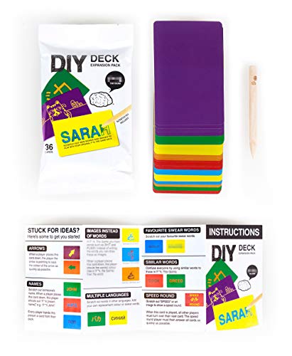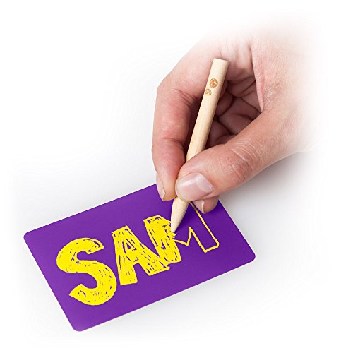 - Simplemente raspe y juegue: use el rotulador provisto para rayar una palabra, imagen o símbolo para agregar su Fk original. el mazo de juegos.