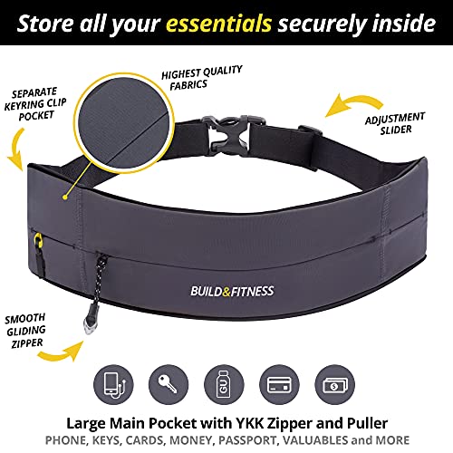 - Se adapta a tamaños de cintura: 60 – 112 cm. Cinturón para correr con cremallera YKK totalmente ajustable. 3 bolsillos separados (1 bolsillo grande con cremallera, 2 bolsillos más pequeños con clip para llaves). Se adapta a todos los tamaños de teléfono, llaves, AirPods, GU 's, tarjetas, dinero y pasaporte.
