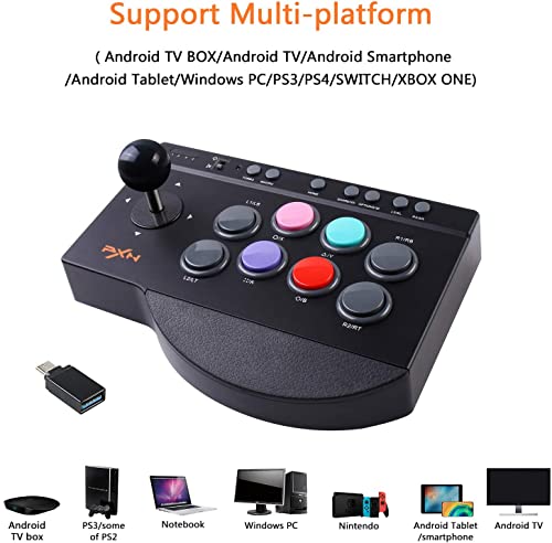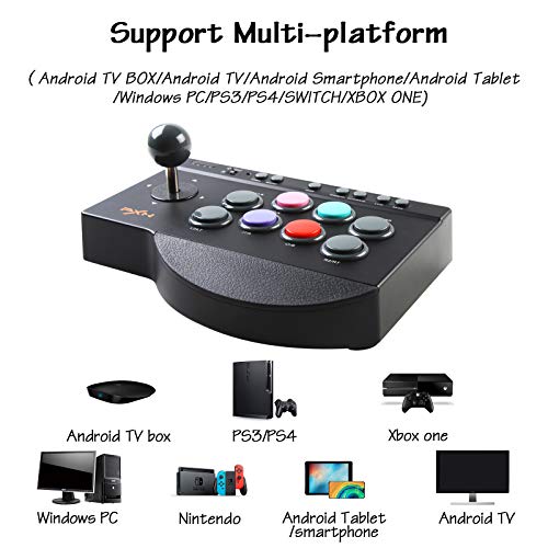 - 【Fuerte compatibilidad】 El Arcade Fight Stick es adecuado para PS3 / PS4 / Xbox One / Nintendo Switch / PC Windows (7/8/10) / Android TV Box / Android Phone (se requiere la función OTG). Nota: no es compatible con dispositivos de sistema Mac e iOS.