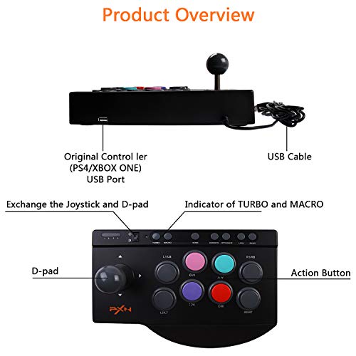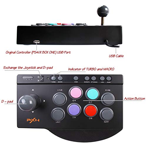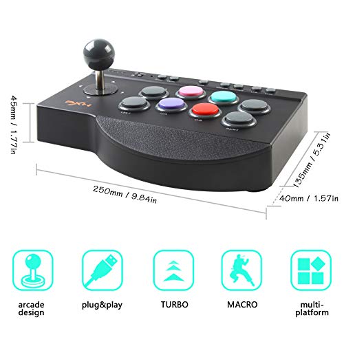 Arcade Fight Stick, PXN Street Fighter Arcade Game Fighting Joystick con puerto USB, con funciones Turbo y Macro, apto para PS3 / PS4 / XBOX ONE / Nintendo Switch / Windows PC.