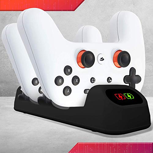 - ?Ubicación y carga: el método de acoplamiento especial asegura que tu controlador no se raye cuando se coloca en el muelle. La base Duo-Charge utiliza adaptadores USB-C extraíbles que se conectan a tu mando para que cuando hayas terminado de jugar simplemente coloca tu mando en el cargador. Compatibilidad universal: los adaptadores USB-C Duo-Chargers hacen que sea compatible con PlayStation 5/Xbox Series X|S/Nintendo Switch Pro-Controller y Stadia.