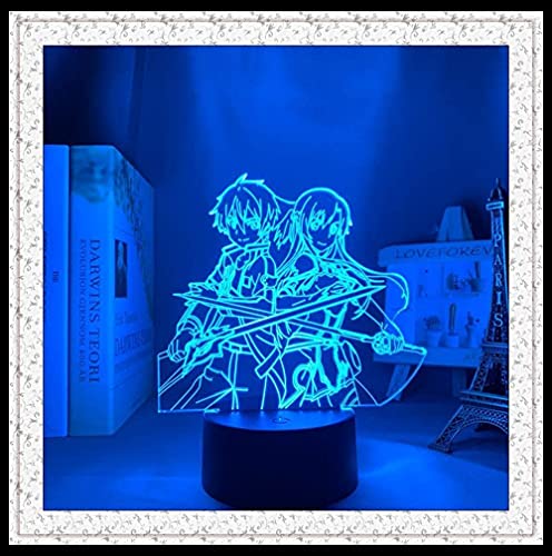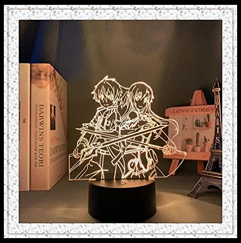 Lámpara de ilusión LED 3D luz nocturna Usb Anime Sword Art Online Kirigaya Kazuto Yuuki Asuna cartel japonés decoración de dormitorio infantil