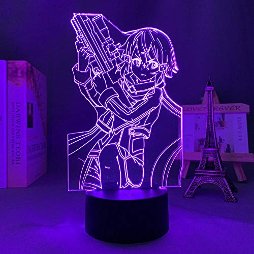Lámpara de ilusión LED 3D Luz de noche Usb Anime Sword Art Online Sinon Figura Signo japonés Decoración de dormitorio infantil