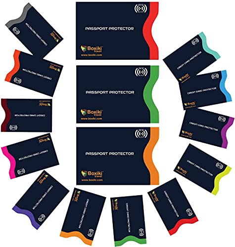 Mangas de bloqueo RFID, juego de 15 codificadas por colores, Tarjetero 12x + Protector de pasaporte 3X, paquete antirrobo