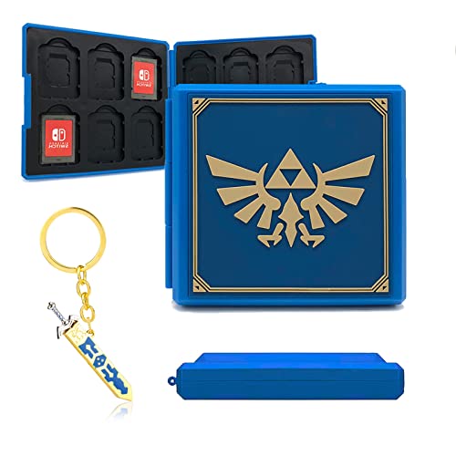 Estuche de Tarjetas de Juego para Nintendo Switch, Estuche Portátil y Rígido Estuche de Almacenamiento de Juegos con 12 Ranuras para Tarjetas, con Espada Llavero Regalo (Zelda Blue)