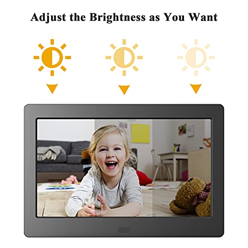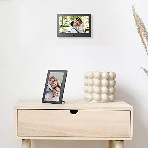 - ?️????????????́? ?? ???????? ???????????: una pantalla IPS de 7" de alta calidad con una resolución de 1024*600 y un ángulo de visión amplio de 178°, que evoca tus preciosos recuerdos. El brillo ajustable y la configuración de rotación automática garantizan una mejor experiencia de visualización. Puede colocar este marco en orientación vertical y horizontal, o incluso fijarlo a la pared.