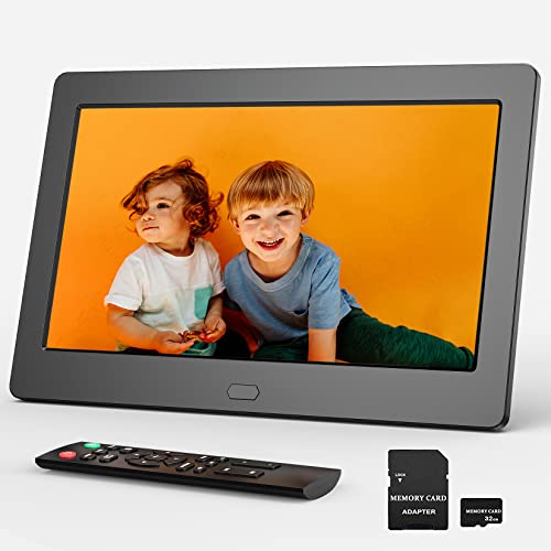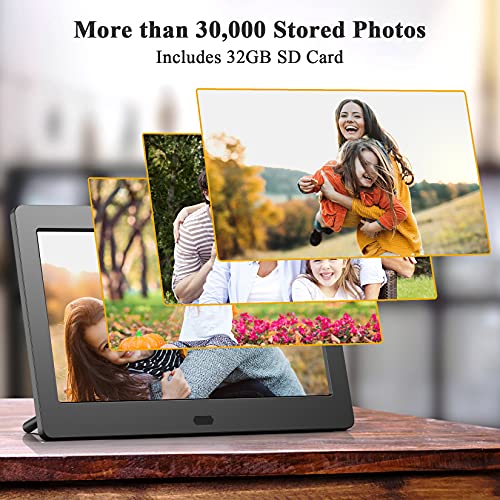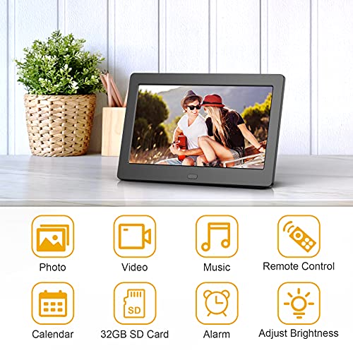 Marco Digital con Tarjeta SD de 32GB, 7 Pulgadas Marco de Fotos Digital con Mando a Distancia, Reproducir Vídeos/Música/Fotos, Utilizado como Despertador/Calendario/Cartelera/Reloj, Regalos