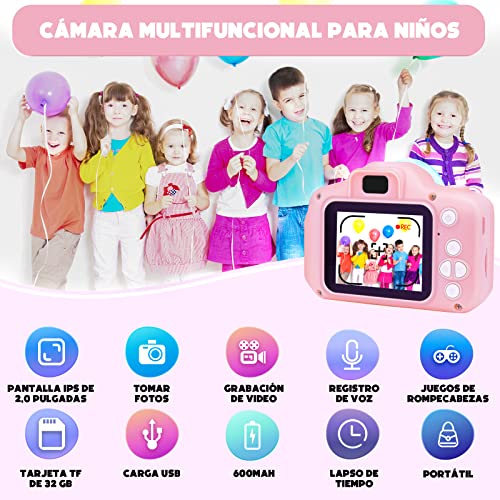 Cámara Fotos Infantil Digital para Niños Juguetes Niña Regalos para Niños Pantalla HD de 2 Pulgadas 1080P Tarjeta de 32GB TF Regalos Juguete para Niños de 3 a 12 años Niños Niñas Cumpleaños (Rosa)
