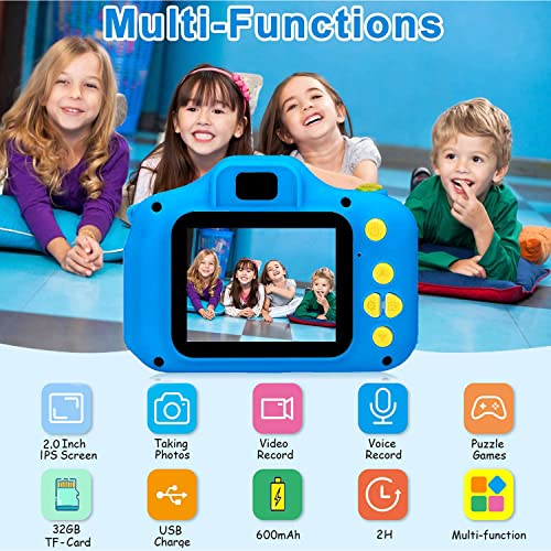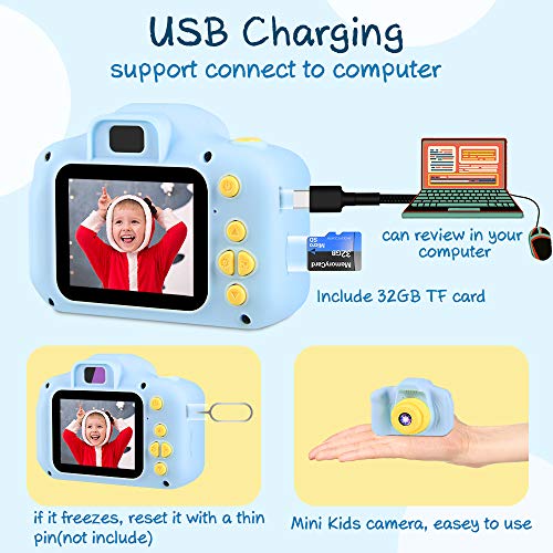 - 【LOS MEJORES REGALOS DE VACACIONES PARA NIÑOS】Esta cámara para niños es el regalo perfecto para los niños en cumpleaños, Festival de Año Nuevo, Navidad, Acción de Gracias y cualquier otra ocasión especial. ¡Si tiene alguna pregunta, por favor contáctenos! ¡Se ofrecerá una solución satisfactoria de acuerdo con la política de garantía! El paquete incluye: 1*Cámara para Niños, 1*Tarjeta SD de 32GB, 1*Lector de Tarjetas, 2*Cordón, 1*Cable USB, 1*Pegatinas de Dibujos Animados, 1*Manual de Usuari
