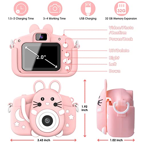 Gofunly Cámara de Fotos Digitales para Niños, 2.0" HD 1080P 20MP Camara de Fotos para Infantil, Tarjeta de Memoria de 32GB Selfie Video Cámara Infantil, Regalos Ideales para Niños de 3-12 Años (Rosa)