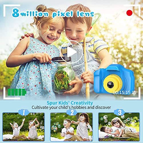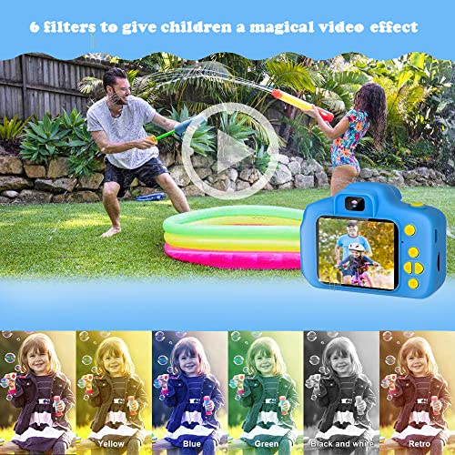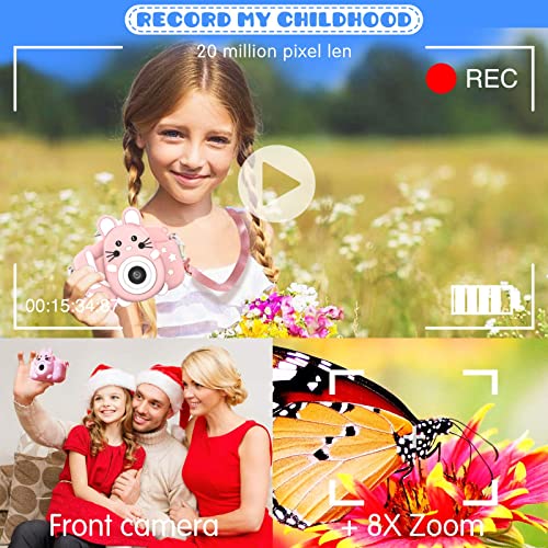 - ❀【Video de 8MP y 1080P】 Pantalla IPS mejorada de 2.0 pulgadas recargable, esta cámara para niños viene con 8 mega pixeles incorporados en un lente poderoso frontal y posterior,en comparación con otras cámaras para niños, tiene una calidad de fotografía mucho superior. La cámara de video de juguete graba videos de hasta 1920x1080p, los niños pueden grabar cada uno de sus momentos felices en cualquier momento.