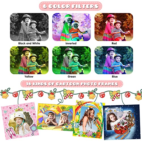 - ❀【Múltiples Funciones y Fácil de Usar】 Enfoque automático, 7 filtros, 15 marcos de fotos, tomas en espejo, tomas a intervalos, grabación de video. Un gran regalo para que los niños exploren el mundo y registren su infancia.