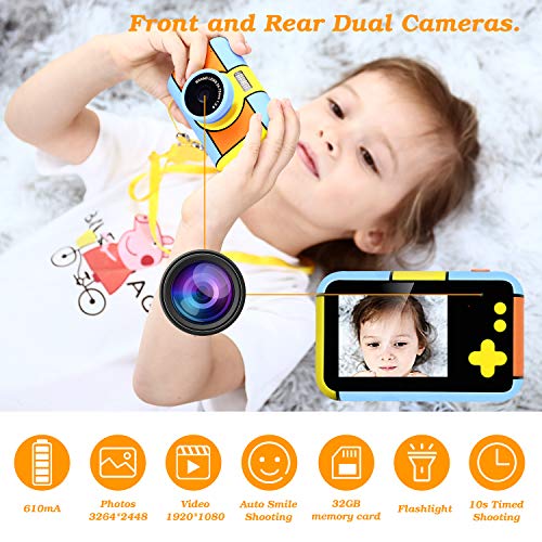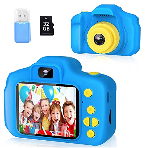 ZStarlite Cámara Digital para Niños, 1080P 2.0" HD Selfie Video Cámara Infantil, Regalos Ideales para Niños Niñas de 3-10 Años, con Tarjeta TF 32 GB, Lector de Tarjetas (Azul Amarillo)