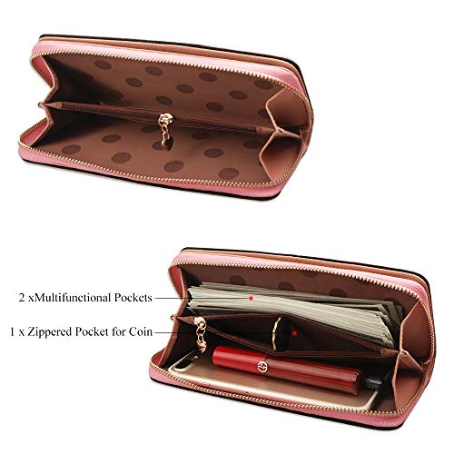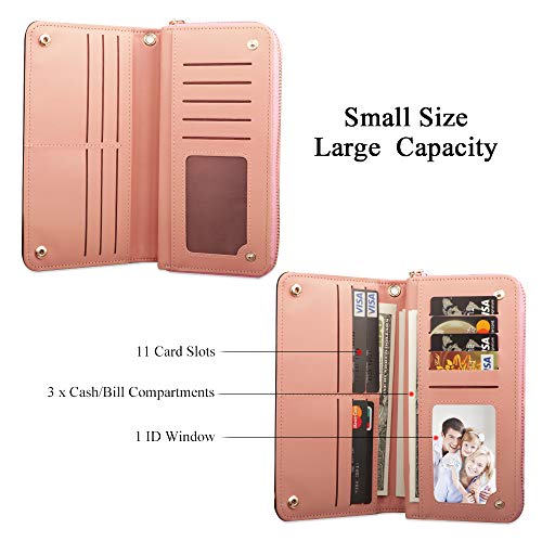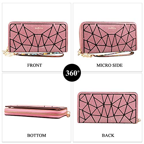 Carteras de Mujer Grandes Monederos Mujer de Gran Capacidad Brillante Piel Embrague para Mujer con Tarjetero para Tarjeta de Crédito RFID Bloqueo Cremallera con Correa de Muñeca Desmontable