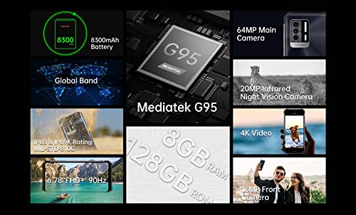 Móvil Resistentes OUKITEL WP17, Cámara 64MP, Visión Nocturna AF 20MP, Android 11 IP68 Smartphone Impermeable Antigolpes, Helio G95 8GB 128GB, 6.78 '' FHD +, 8300mAh Batería 4G Global Bands, GPS NFC