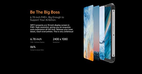 - ★【FHD + de 6,78 Pulgadas, lo Suficientemente Grande para Apoyar su Ambición】WP17 presenta una pantalla de visualización de 6,78 pulgadas en alta resolución FHD +, que le brinda una experiencia visual exquisita todo el tiempo. Libera tu bestia interior, llega a todas partes. ¡Esto es muy ambicioso! (Pantalla Fullview FHD + de 6,78 pulgadas, resolución FHD + 2400 x 1080, frecuencia de actualización de 90 Hz)