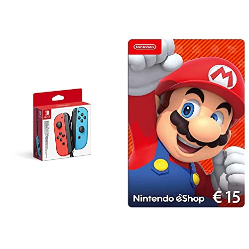 Nintendo - Mando Joycon Set, Color Azul Y Rojo (Nintendo Switch) + Nintendo eShop Tarjeta de regalo 15€ | Nintendo Switch - Código de descarga