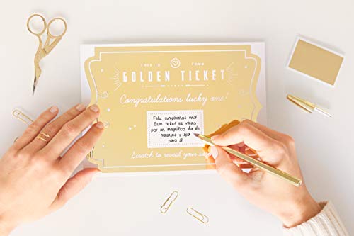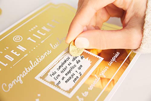 - El Golden Ticket es la tarjeta más especial para dar una sorpresa o regalo a alguien, tanto para Navidad como para su cumpleaños o cualquier ocasión especial. Sea para escribirle el mensaje más amoroso del mundo, regalarle un viaje, unas entradas a un concierto, un día de spa o una cata de gin tonics, como para anunciar una gran noticia, esta impresionante tarjeta dorada le dará el reconocimiento que la ocasión merece!