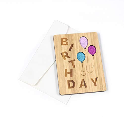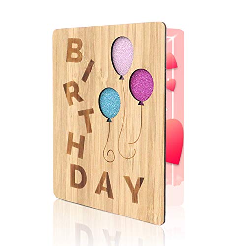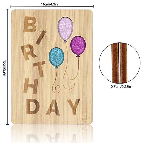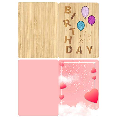 Clheatky Tarjeta Cumpleaños,Tarjeta Felicitacion,Tarjeta de felicitación de madera,Tarjeta de felicitación de bambú con sobre rojo,Regalo de cumpleaños ideal…