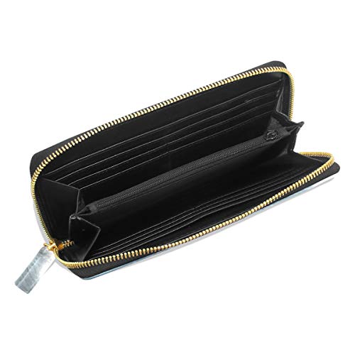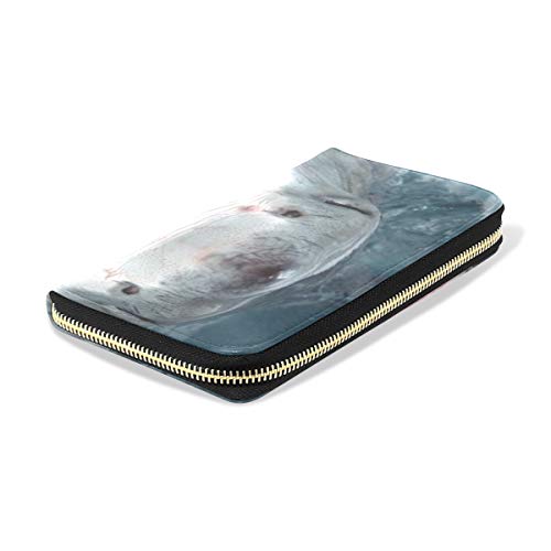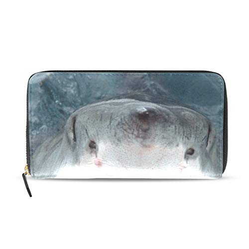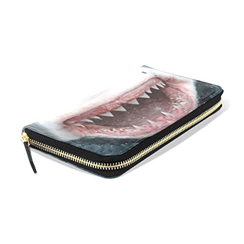 Cartera de cuero con cremallera larga alrededor del bolso de embrague de la puesta del sol del océano bolso de viaje titular de la tarjeta de crédito, Gran tiburón blanco., Talla única, classic