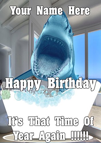 Tarjeta de felicitación personalizada con diseño de tiburón blanco bd72 para todos los años 2016 de Derbyshire, tamaño A5, diseño de tiburón blanco